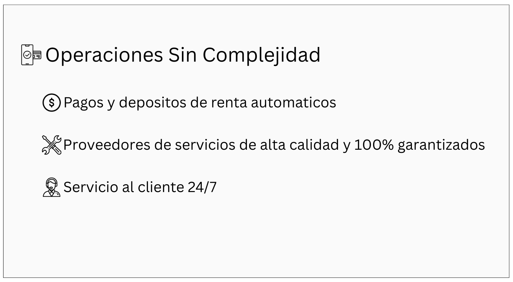 Contratos transparentes y inmediatos. Mantenimientos y arreglos 100% garantizados con los mejores proveedores del país. Servicio al cliente enfocado en resolver tus necesidades sin estrés, con confianza en el servicio y con tu seguridad como prioridad.